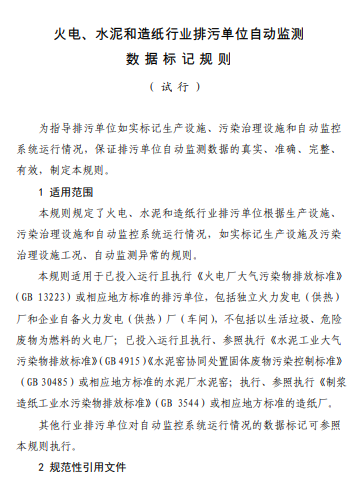 為做好火電、水泥和造紙行業污染物排放自動監測數據標記和電子督辦試點工作,推動建立以排污單位自主標記為基礎的數據有效性判定規則體系,我局組織技術單位編制了《火電、水泥和造紙行業排污單位自動監測數據標記規則(試行)》(以下簡稱標記規則)。
